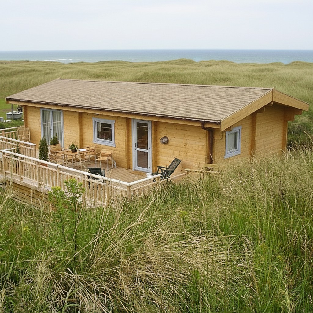 Praktiline ühekordne 70 m2 palkmaja - kahe magamistoaga suvila, millel on ees avar terrass. See on tehtud neljaliikmelisele perele.