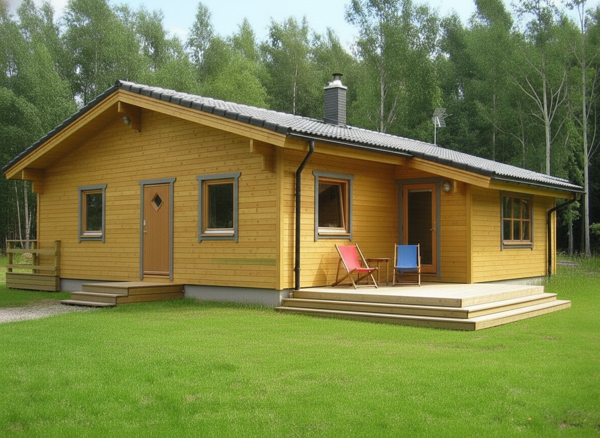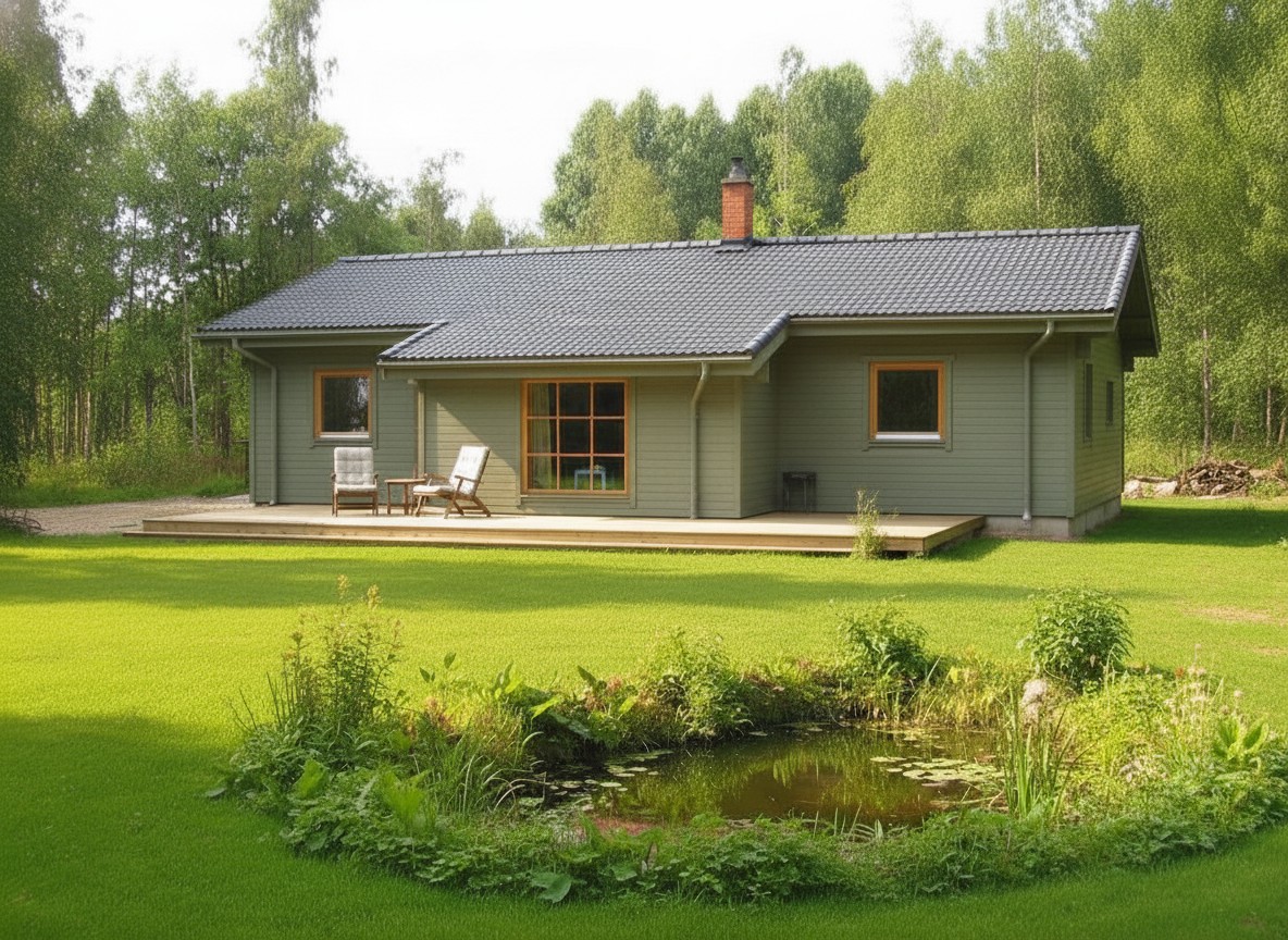 Kolme magamistoaga ühekordne 121 m2 elamu Soome lahe lõunakaldal. Pärast mitmeid kokkusaamisi ja kirjavahetusi jõudsime sobiva elamu projektini. Meie poolt projekteerimine, tootmine ja majakarbi ehitus, palju tööd tegi ettevõtlik tellija ise oma jõududega. Olgu väljas pakane ja lõõtsuv tuul või südasuve kuum päike on majas stabiilne sisekliima. Selle tagab hästi soojustatud seinad ning ökonoomne maasoojuspump. Vahva ja julge välisseinte värvilahenduse mõtles pererahvas ise välja.