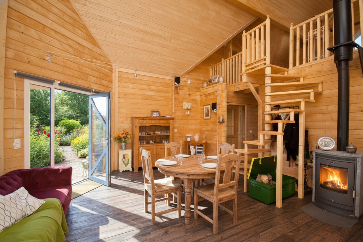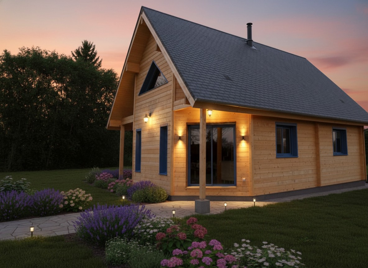 Double 70mm skin and space for 200mm insulation making this house energy efficient. 2 bedrooms and an attached workshop.
