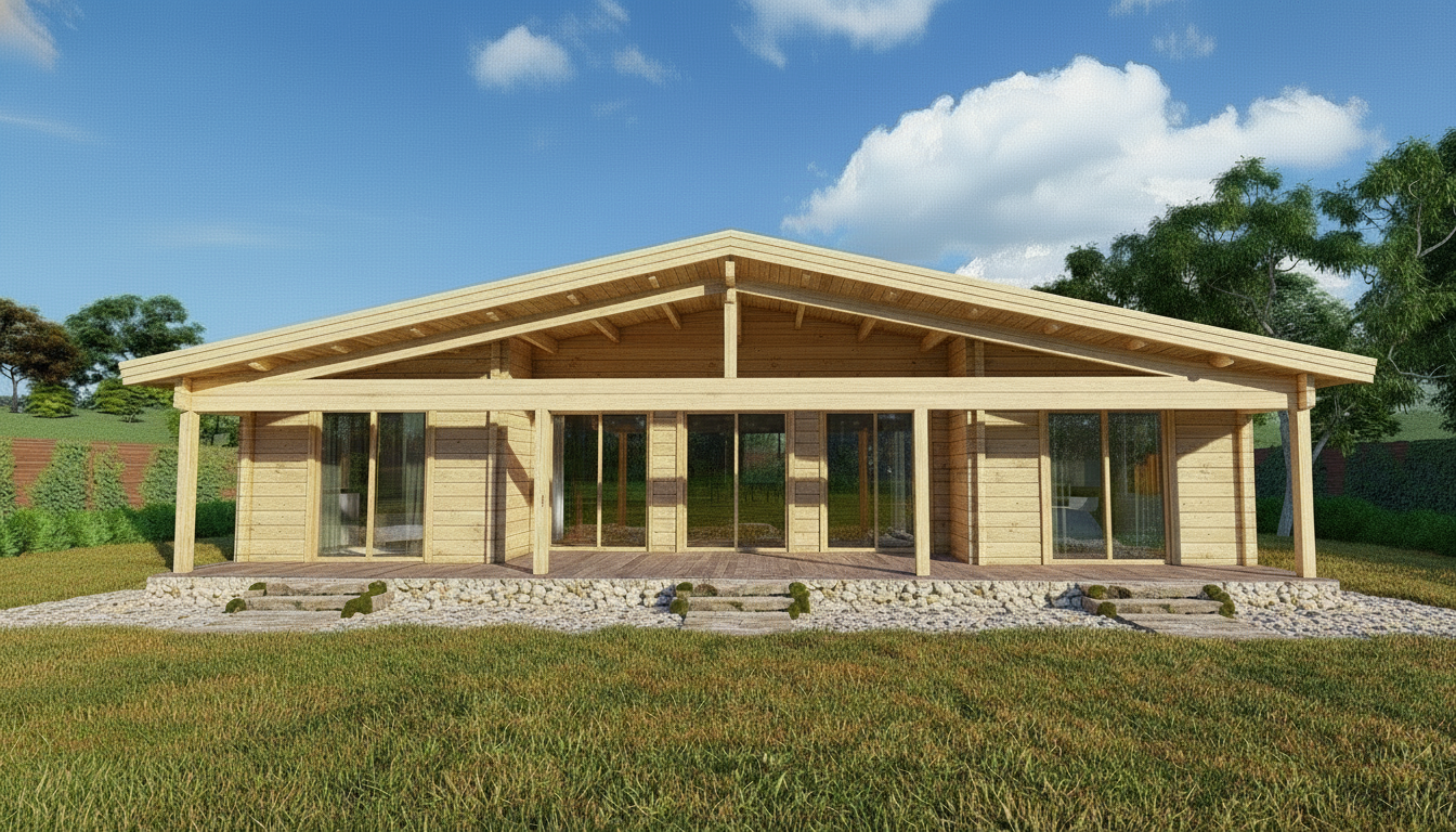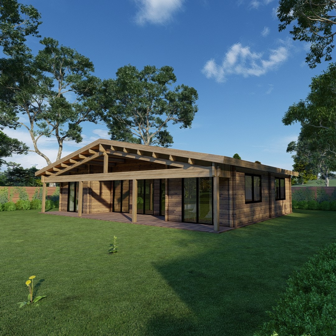 Marylin 95 - 2 bed flat packed prefabricated wooden house This house comes as 2 or 3 bedroom house. It has a combined kitchen and living space and has with up to 3 bedrooms even space for a small family.