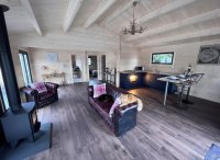 Selle ligi 100 m2 suuruse, ühekordse maja asukoht on Prantsumaa Alpides. Pärast mitmeid kooskõlastusi, mõningaid projekti muudatusi, valmistasime selle maja puitosad ja aknad, uksed ning püstitus sai teoks meie Prantsusmaa partneri abil. Maja on konstrueertud hästi vastupidavaks igasugustes ilmastiku tingimustes, sest mägedes on ilm ja hästi heitlik. Hea sisekliima ja väikse energiatarbe annab puitsein, mille väline osa on soojustatud mineraalvillaga.